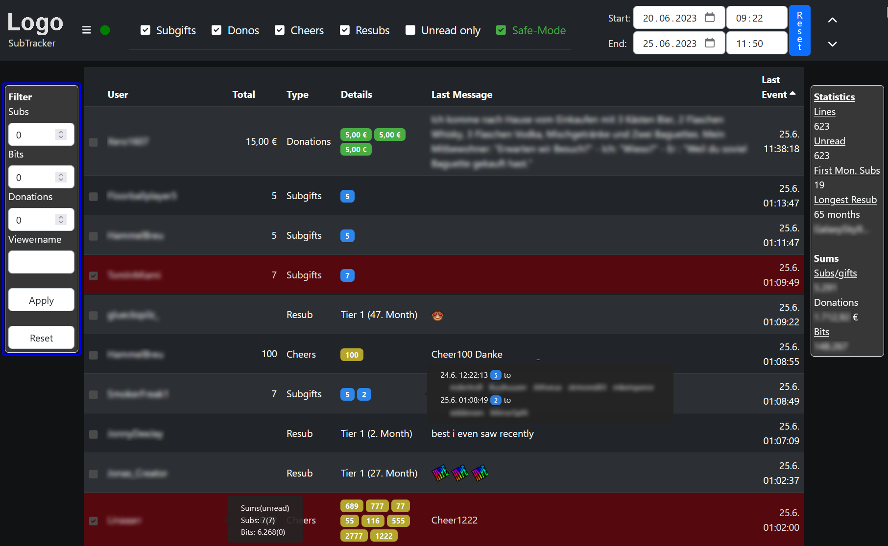 Apply Button: Activate the filter (can also be done by pressing enter in any field)